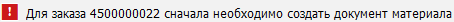Если в заказе содержатся позиции, требующие поставки, функционал выполняет поиск документа материала.