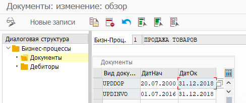 Для созданных бизнес-процессов по выбранной строке и двойному клику можно попасть в ведение документов и дебиторов.