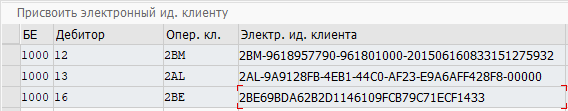 Вводится: БЕ – Дебитор – Оператор – Идентификатор клиента