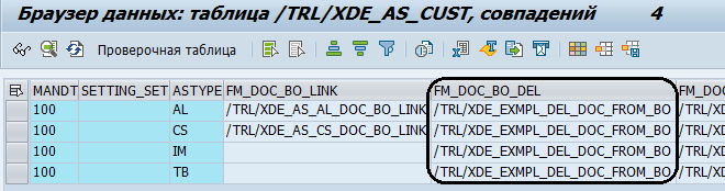 После чего запускается цикл по найденным документам и для каждой записи вызывается функциональный модуль /TRL/XDE_DEL_DOC_FROM_BO, внутри