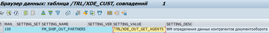 В случае диалогового режима – определяем партнеров документооборота с помощью ФМ /TRL/XDE_GET_SHIP_OUT_PARTNERS. Этот ФМ достает имя модуля из настройки FM_SHIP_OUT_PARTNERS и делает вызов.