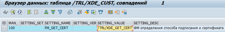 Имя функционального модуля определения способа подписания и сертификата хранится в таблице /TRL/XDE_CUST по имени настройки FM_GET_CERT.