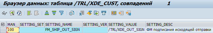 Имя функционального модуля для подписания исходящего отправления находится в таблице /TRL/XDE_CUST по имени настройки FM_SHIP_OUT_SIGN.