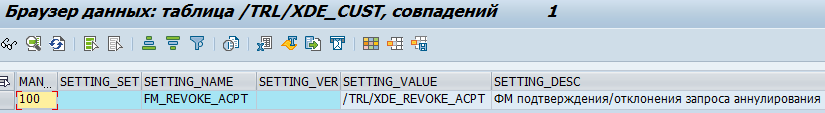 Имя ФМ подтверждения/отклонения запроса аннулирования хранится в таблице /TRL/XDE_CUST по имени настройки FM_REVOKE_ACPT.