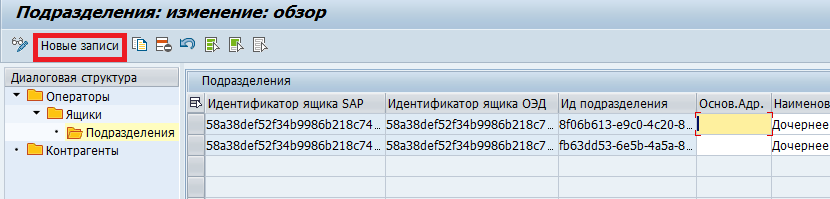 операторам и ящикам, если такие есть.После того как вы перешли в режим редактирования, вы можете отредактировать неключевые поля уже существующих записей либо удалить уже существующие записи. Для создания новых записей необходимо нажать на кнопку «Новые записи».