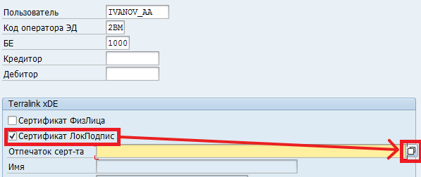 /TRL/XDE_V_CERTустановить флаг «Сертификат ФизЛица». При этом будут открыты на редактирование поля «Должность», «ИНН», «Организация».