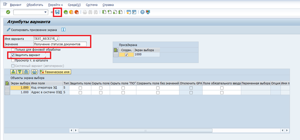 Атрибуты варианта. Заполните поля данными, указанными в таблице, и нажмите