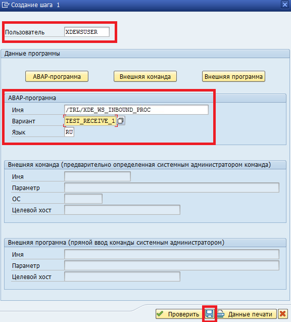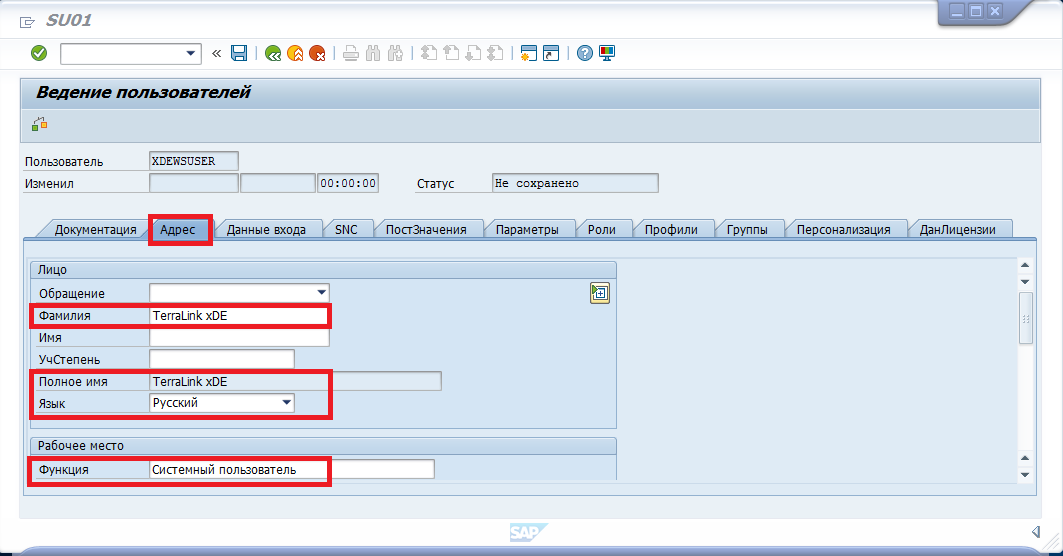 В системе SAP должен быть создан системный пользователь XDEWSUSER с постоянно действующим паролем. Для создания системного пользователя необходимо выполнить следующие действия.