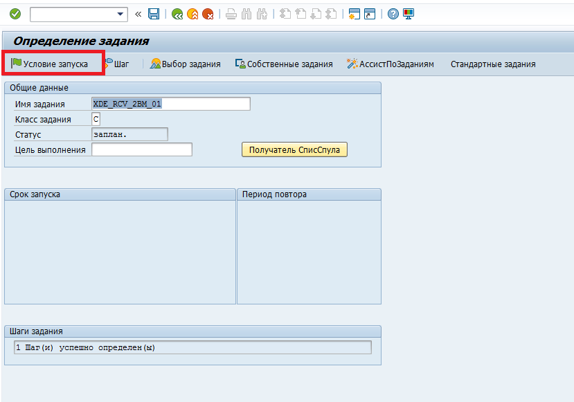 Определение задания. Нажмите кнопкуУсловие запуска.