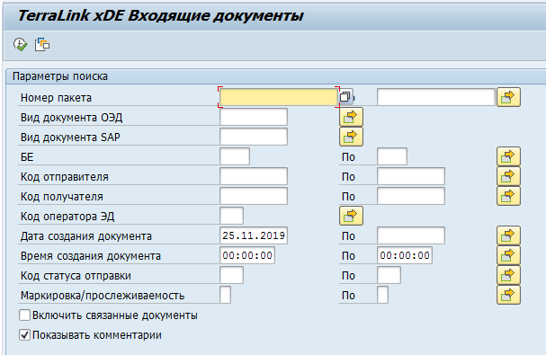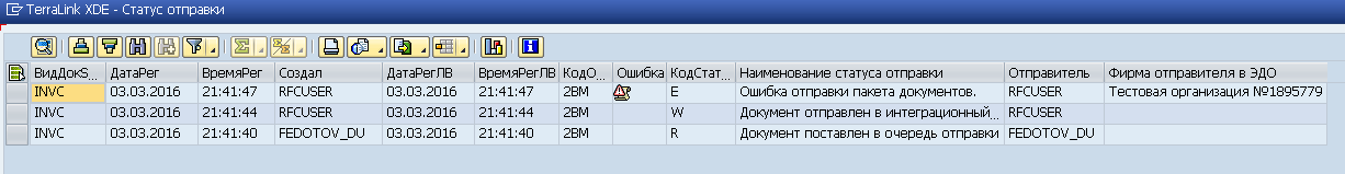 Для просмотра очереди исходящих документов запустите транзакцию /TRL/XDE_OUTBOX, введите на селекционном экране требуемые ограничения (например, по дате отправки) и нажмите кнопку
