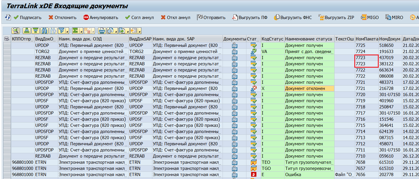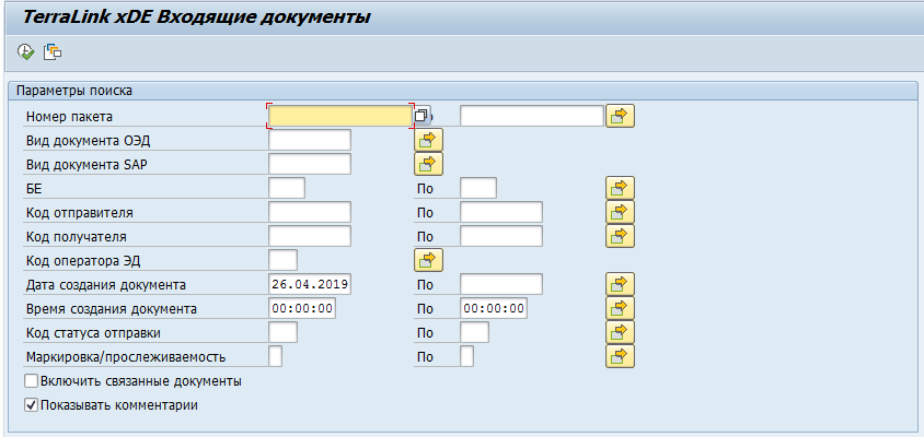 Например, если на селекционном экране транзакции /TRL/XDE_INBOX ввести в поле «Номер пакета» необходимое