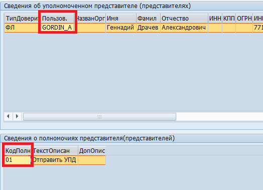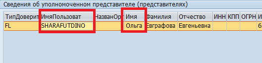 При использовании любого из вышеперечисленных вариантов необходимо заполнить только одно поле - данные пользователя SAP на ALV-таблице уполномоченных представителей.