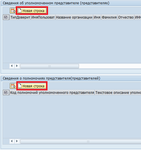 Для МЧД формата 003 для ALV-таблиц данных о доверителях и уполномоченных представителях необходимо также нажать на кнопку «Новая строка».