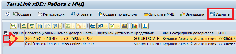 Для того чтобы отозвать МЧД, выберите нужную строку на ALV и нажмите на кнопку «Отозвать».
