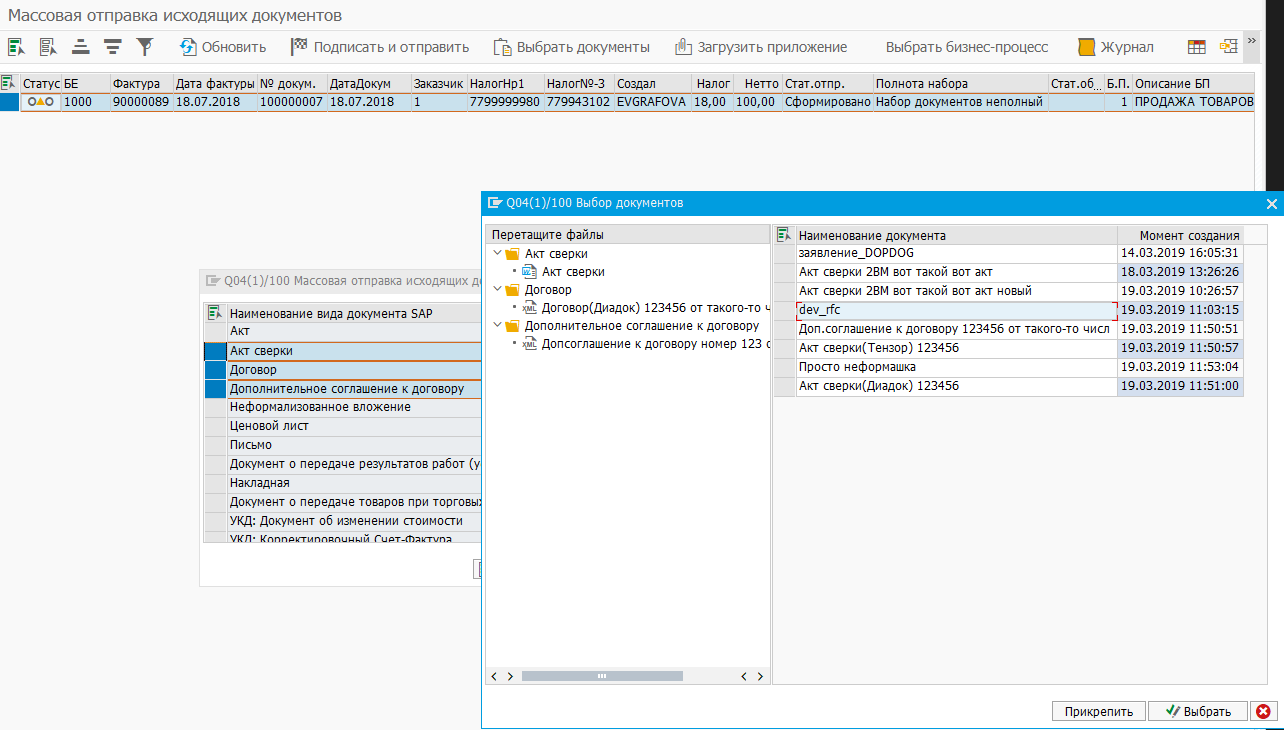 Для массовой автоматической отправки полуформализованных документов приложение, привязанное к фактуре, должно иметь правильный префикс или постфикс у имени файла.