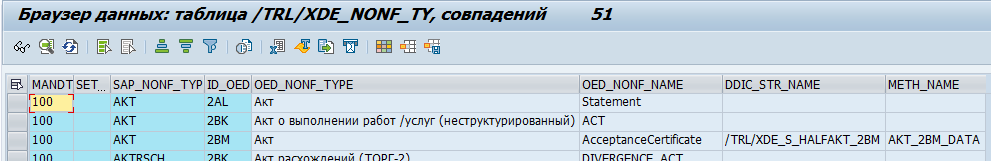 Для создания и настройки полуформализованных документов в системе SAP создана таблица /TRL/XDE_NONF_TY.