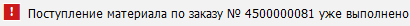 и предзаполнение транзакции MIGO будет приостановлено.Если по всем позициям заказа не осталось открытых количеств, пользователь получит сообщение
