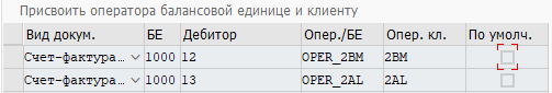 Вводится: БЕ – Дебитор – Оператор – Идентификатор клиента