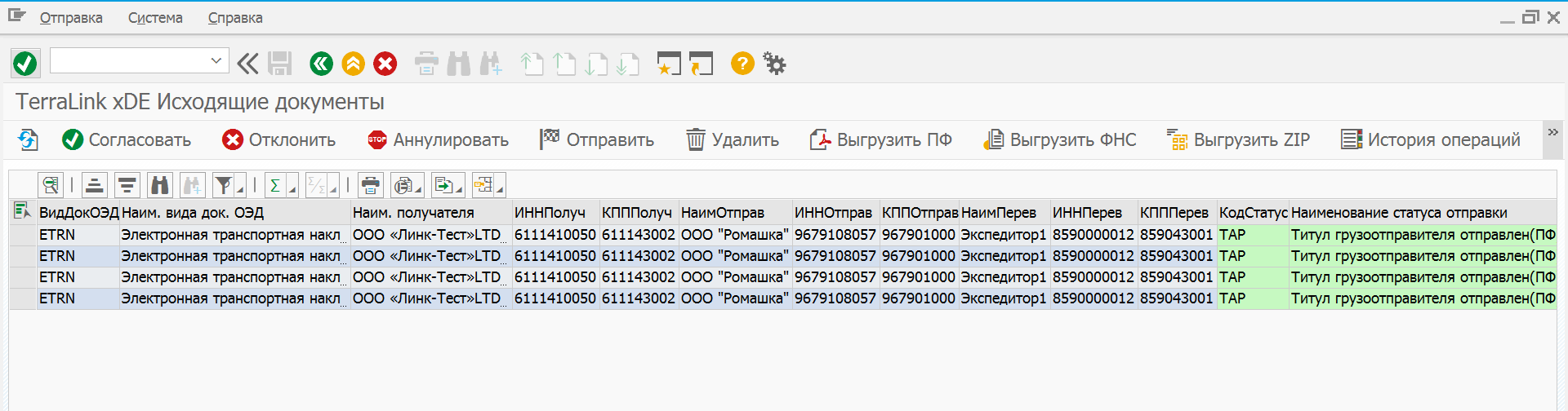 Для отправки исходящих ЭТрН при помощи функционала выходных документов используется программа