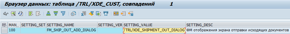 /TRL/XDE_GET_SHIP_OUT_PARTNERSвозникнут ошибки – в лог будет добавлено системное сообщение, выведен лог и произойдет выход из ФМ.Далее ищем ФМ создания отправки по имени настройки