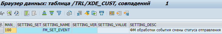 Имя функционального модуля обработки события изменения статуса отправления хранится в таблице /TRL/XDE_CUST по имени настройки FM_SET_EVENT.