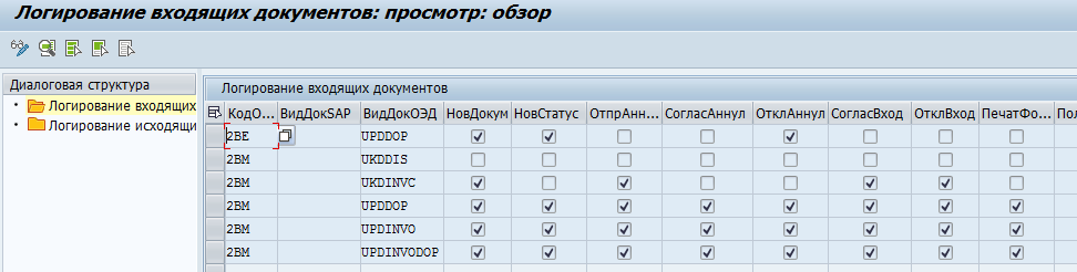 заполнить только поле ID_OED = «XXX» для входящих и/или исходящих документов и оставить поля SAP_DOC_TYP и OED_DOC_TYP пустыми.