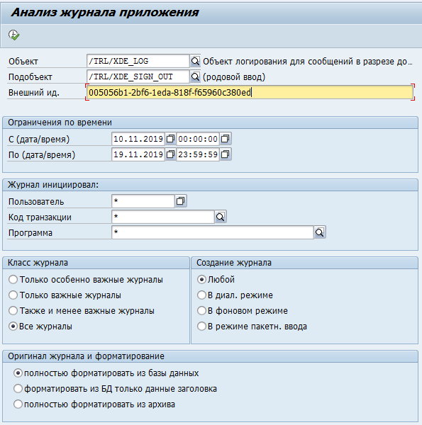 Для ведения таблицы создан кластер ракурсов /TRL/XDE_LOG_SETTINGS, который также может быть вызыван с помощью транзакции /TRL/XDE_LOGGING.