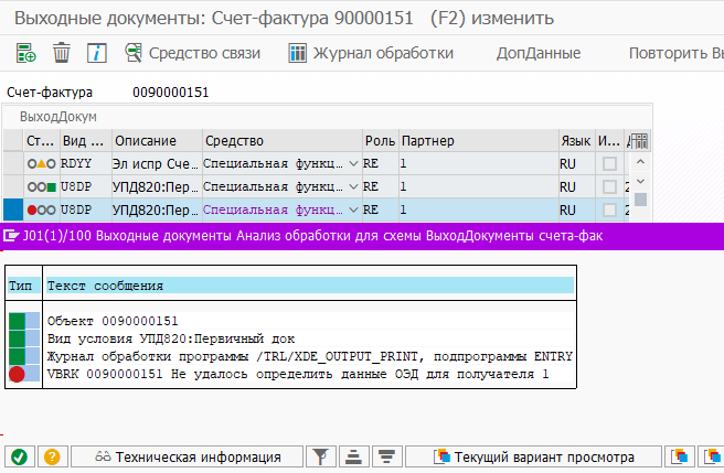 Стандартный журнал обработки для выходных документов будет фиксировать ошибки в процессе постановки электронного документа в очередь отправки.