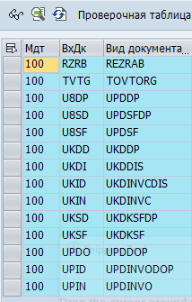 По умолчанию в Продукте настроены следующие виды документов SAP.
