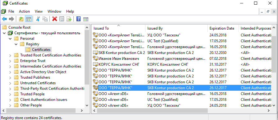 На появившемся экране выберите подходящий сертификат и дважды кликните по нему левой кнопкой мыши.