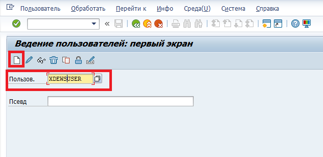 В системе SAP должен быть создан системный пользователь XDEWSUSER с постоянно действующим паролем. Для создания системного пользователя необходимо выполнить следующие действия.