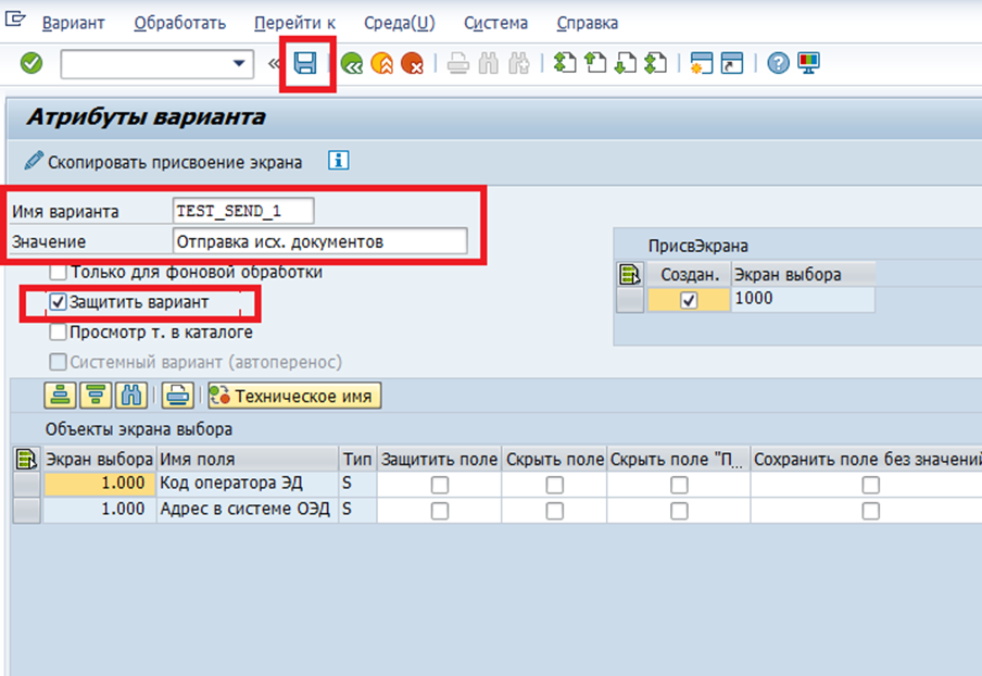 Атрибуты варианта. Заполните поля данными, указанными в таблице, и нажмите