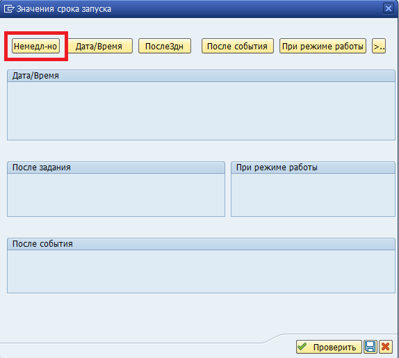 Значения срока запусканажмите кнопкуНемедленно.Выберите опцию
