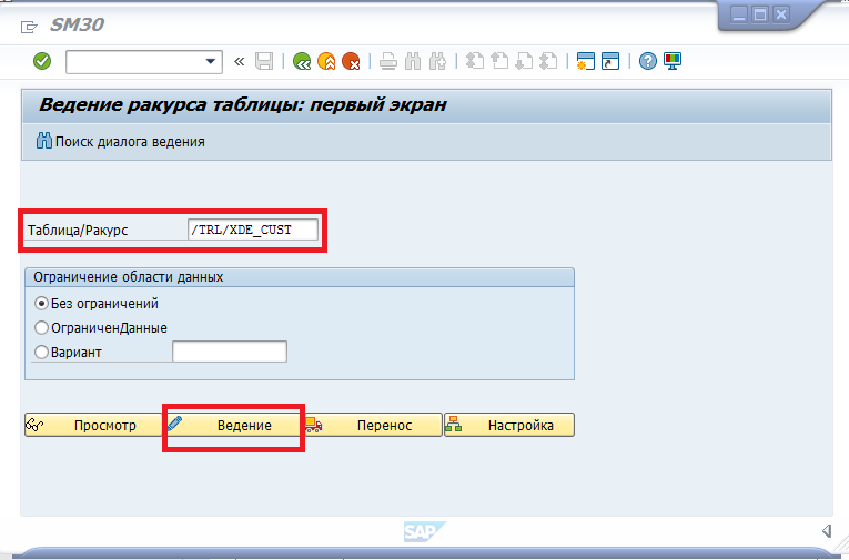 либо перейдя к ведению ракурса таблицы /TRL/XDE_VRESTSV из транзакции SM30.