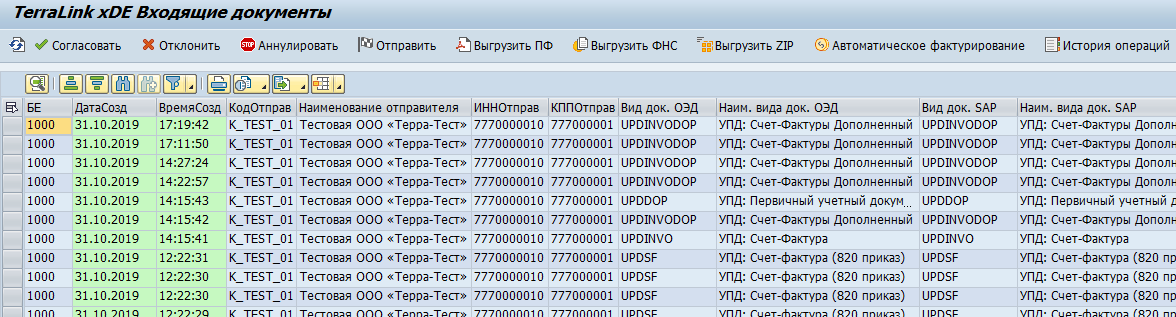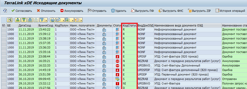 От контрагента пришел запрос на аннулирование документа. Запрос на аннулирование можно принять/согласовать («N») или отклонить («NR») |