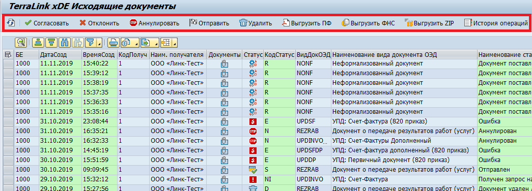 Система отобразит список исходящих документов, находящихся в одном из следующих статусов: