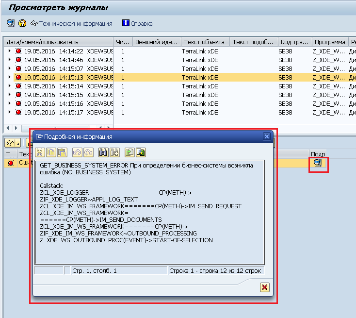 Модуль xDE для SAP ERP в ходе своей работы выполняет запись отладочной информации в журнал приложения SAP.