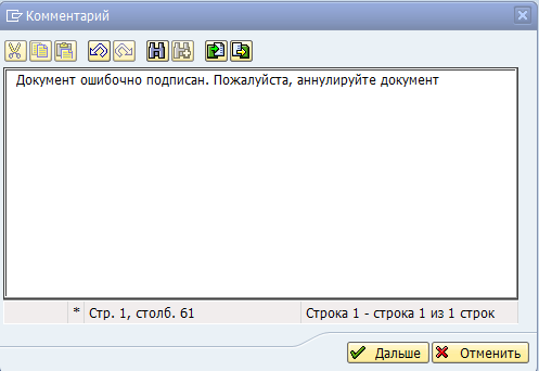 Комментарий, введенный пользователем при аннулировании,