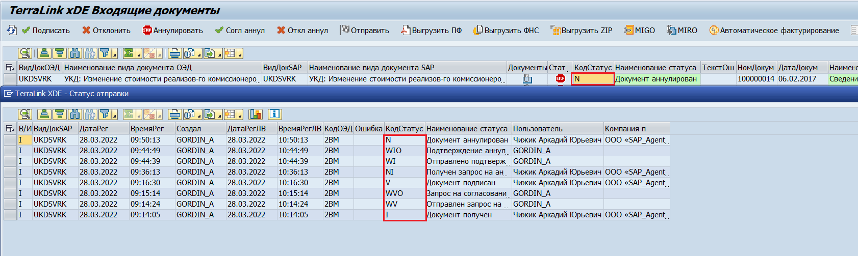 Таким образом, статус документа будет изменен на «Аннулирован»