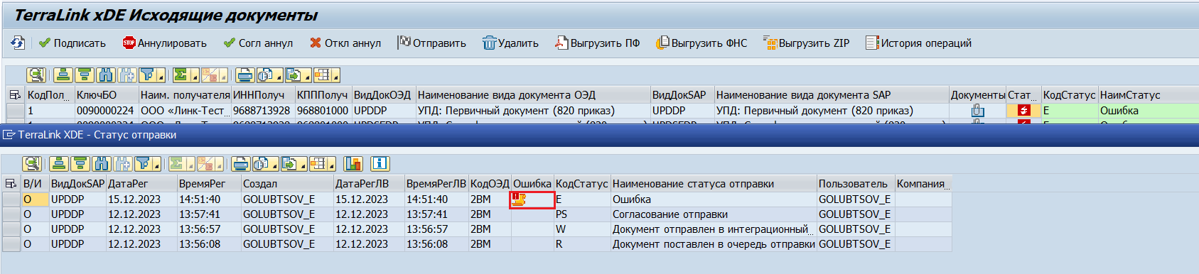/TRL/XDE_OUTBOX и нажать кнопку «Аннулировать».