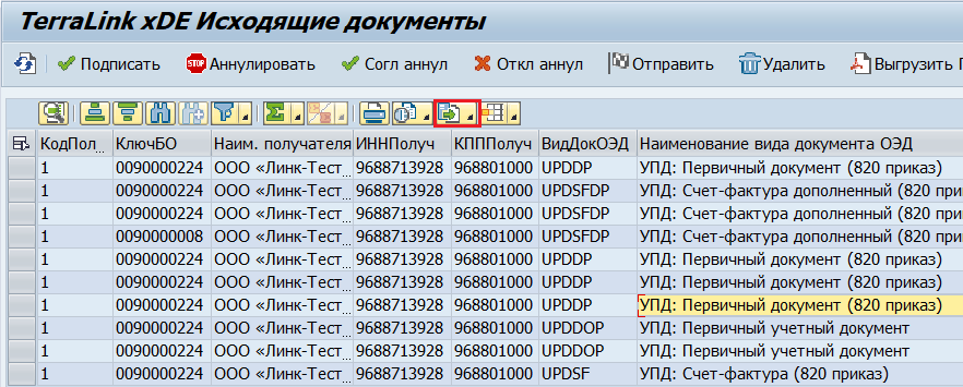 Отправить — отправить можно документ, предварительно поставленный в очередь отправки, либо повторно отправить документ в статусе