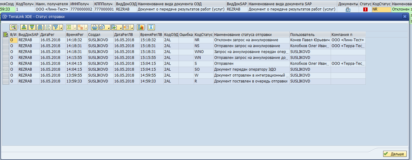 «Аннулирован» – в случае если контрагент согласует запрос на аннулирование документа;