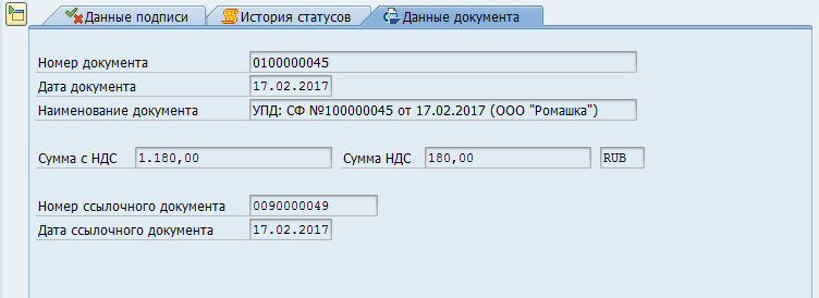 Основные данные — включает наиболее значимые данные отправки: данные заголовка документа, данные отправителя/получателя и данные их подразделений, если таковые участвовали в документообороте.
