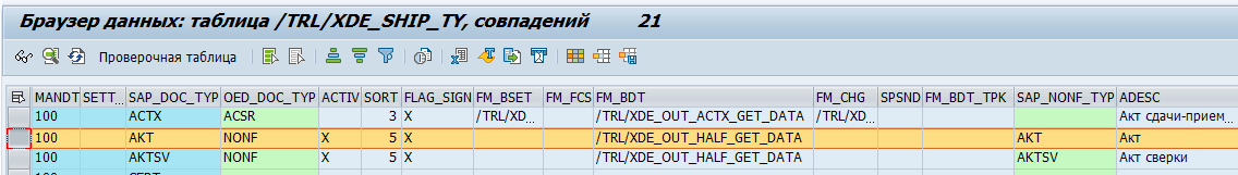 Для создания и настройки полуформализованных документов в системе SAP создана таблица /TRL/XDE_NONF_TY.