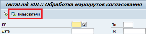 Для работы с отчетом по маршрутам согласования, созданным в ИМ, необходимо чтобы для текущего пользователя была создана связь с пользователем ИМ. Для этого на селекционном экране программы предусмотрена кнопка «Пользователи», нажав которую можно попасть в транзакцию по созданию связей между пользователями SAP и ИМ.