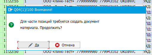 и предзаполнение MIRO будет приостановлено.Если только часть позиции требует поступления материла и документ материала не будет найден, пользователь получит следующее сообщение с возможностю продолжить предзаполнение MIRO.