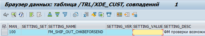 /TRL/XDE_SHIPMENT_OUT_ADD. Этот ФМ для постановки единичного документа в очередь отправки. В цикле по списку документов для отправки – получаем настройки вида документа SAP и выполняем проверку, что для неформализованных документов должны быть заполнены бинарные данные или ссылка на документ в архиве.