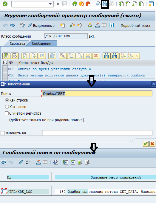 Для поиска ошибок, возникших во время логирования, можно воспользоваться классом сообщений /TRL/XDE_LOG (транзакция SE91), который создан