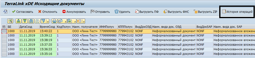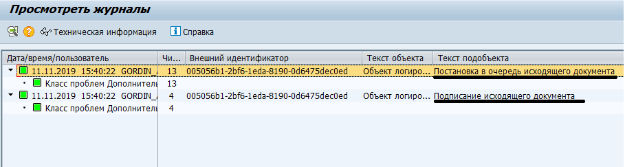 Сохранить в журнал приложений SAP |