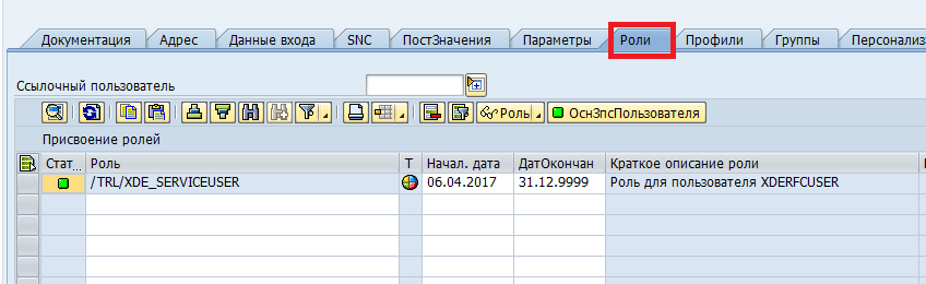 Ролии присвойте пользователю роль/TRL/XDE_SERVICEUSER. Нажмите